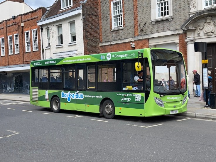 Another long standing rural bus route offering a flexible routing on each journey depending who has requested it by telephoning in advance has been route 99 operated by Compass Bus between Chichester and Petworth in West Sussex. At the end of July 2023, as with route 101 in Wiltshire, this was upgraded to using an app along with a fully flexible second bus using the Book-A-Bus branding.